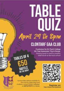 5th Year Kenya Immersion Fundraiser – Table Quiz
